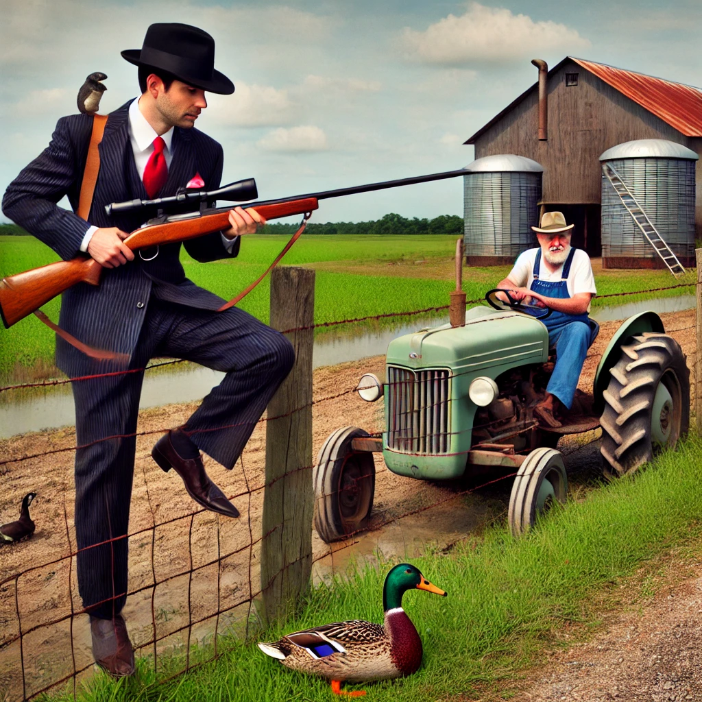 A big city lawyer went duck hunting in South Louisiana. He shot and dropped a bird, but it fell into a farmer’s field on the other side of a fence. As the lawyer climbed over the fence, an elderly farmer drove up on his tractor and asked him what he was doing. The litigator responded, “I shot a duck and it fell in this field, and now I’m going into retrieve it.”