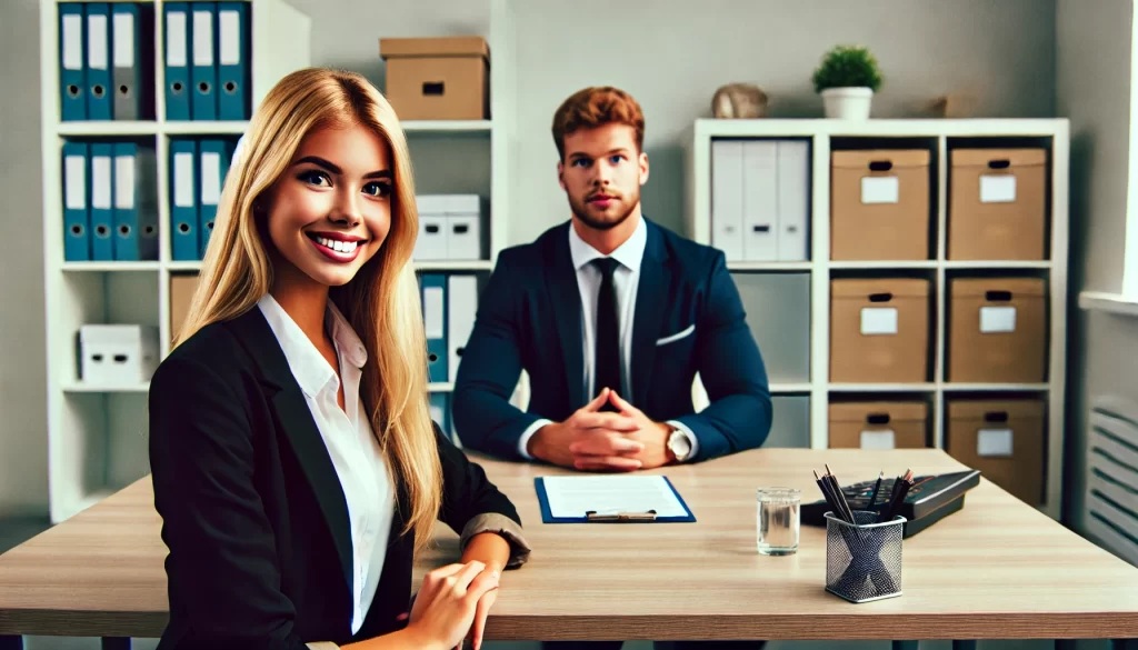 A blonde goes for a job interview in an office. The interviewer decides to start with the basics.