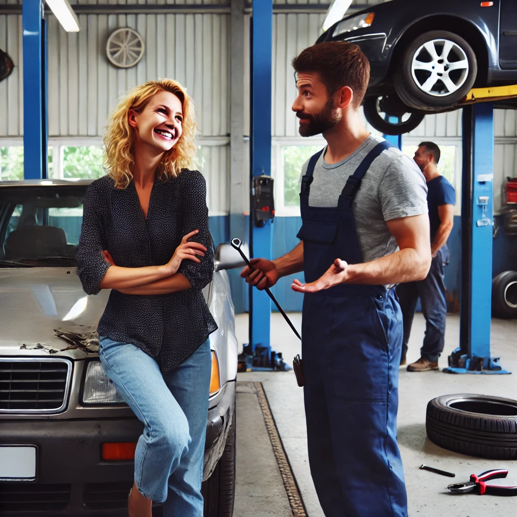The mechanic, noticing that the woman was a blonde, decided to have some fun.