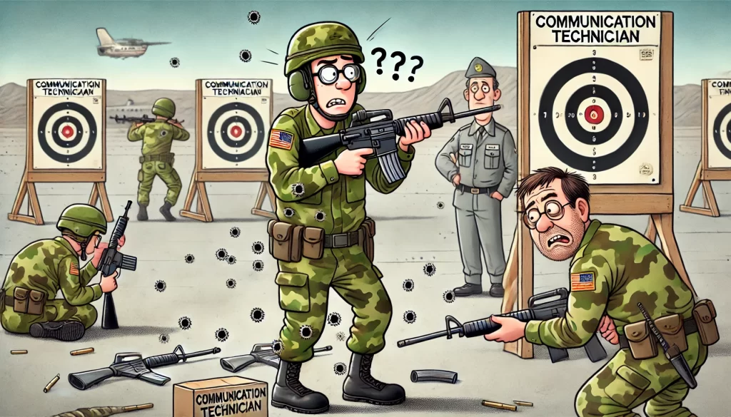 A communication technician drafted by the army was at a firing range.