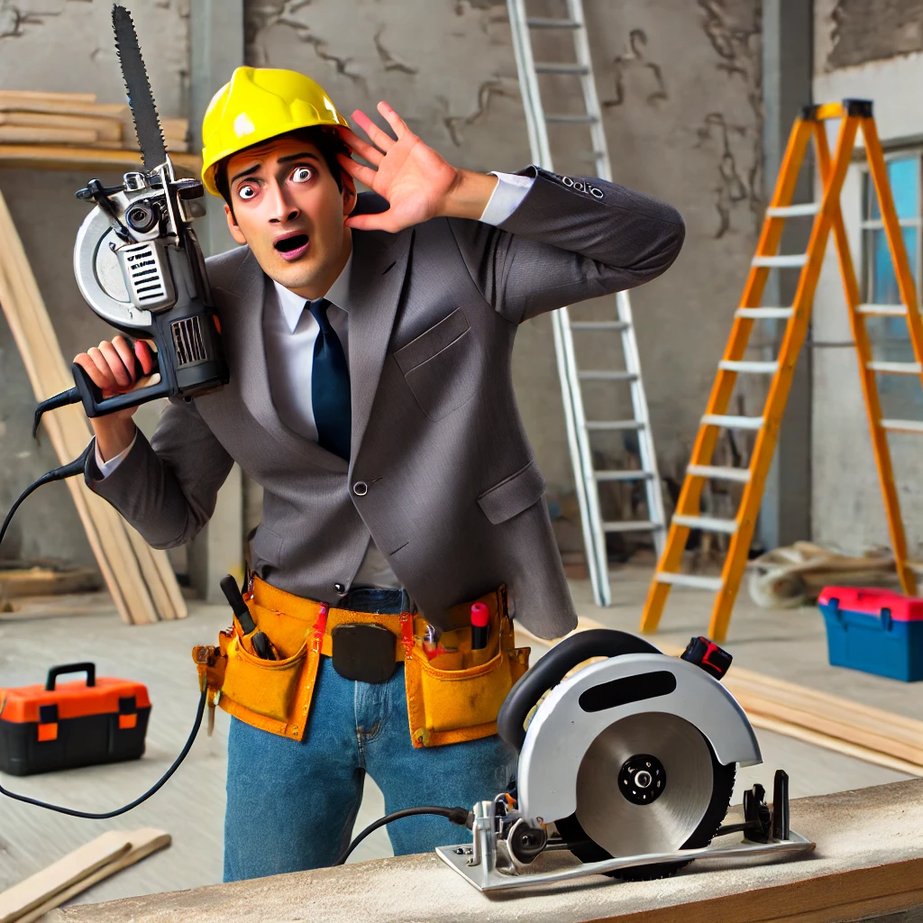 A construction worker accidentally cuts off one of his ears with an electric saw. He calls out to a guy walking on the street below, “Hey, do you see my ear down there?”