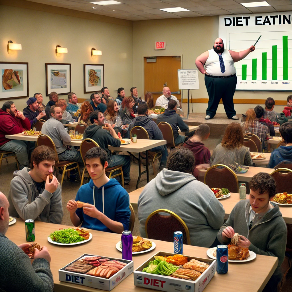 A diet guru is holding a seminar in the conference room of a large hotel