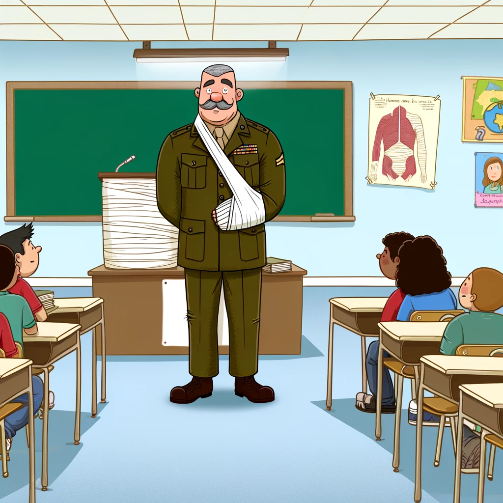 A former Sergeant in the Marine Corps took a new job as a high school teacher. Just before the school year started, he injured his back.