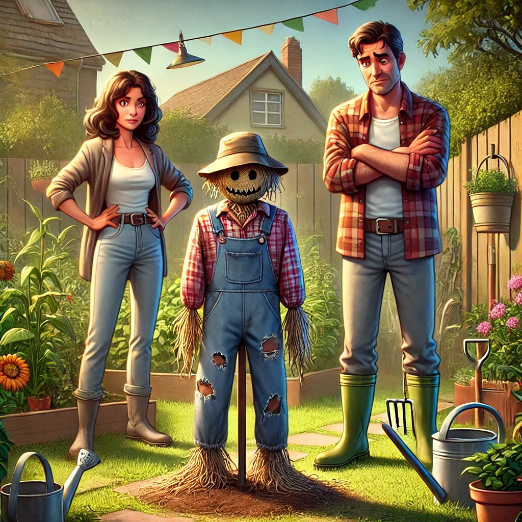 A husband and wife are staring at their garden. “Sooner or later,” the wife comments, “you’re going to have to put in a better scarecrow.”