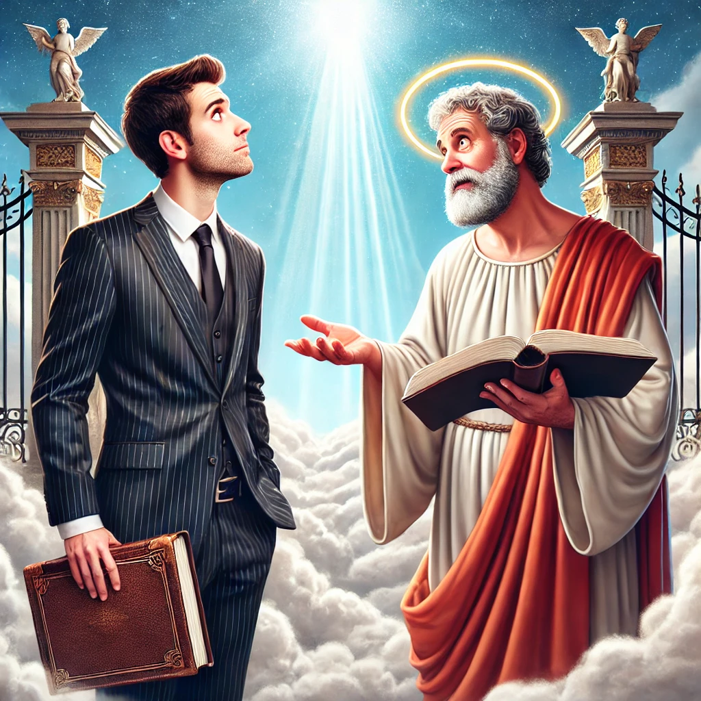 Saint Peter then whispered to Gabriel, “Well, what do you suggest we do with this fellow?”