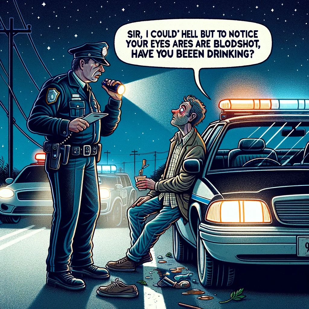 After looking the man over the policeman says, “Sir, I couldn’t help but notice your eyes are bloodshot. Have you been drinking?”