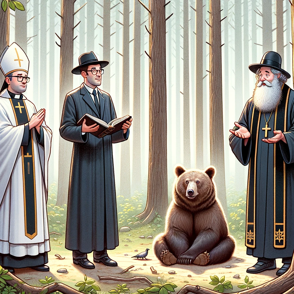 So they each go into the woods, find a bear, and attempt to convert it. Later they get together. The priest begins: “When I found the bear, I read to him from the Catechism and sprinkled him with holy water. Next week is his first communion.”