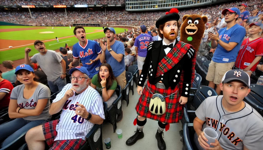 A Scottish tourist attended his first baseball game in the US and after a base hit he hears the fans roaring “Run….Run!”