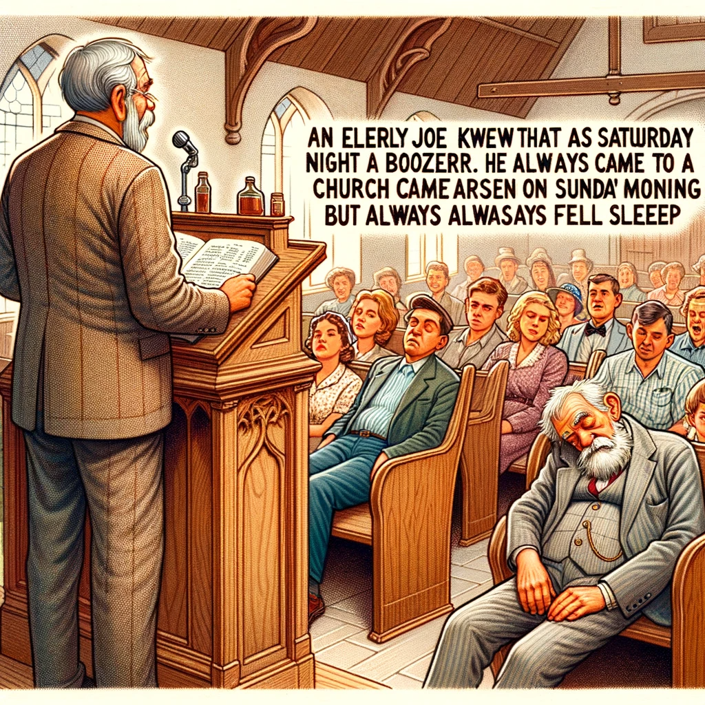 He always came to church on Sunday morning but always fell asleep from his Saturday night binges.