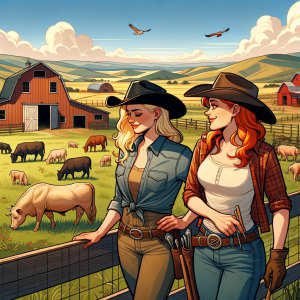 A blonde and a redhead have a ranch. They have just lost their bull