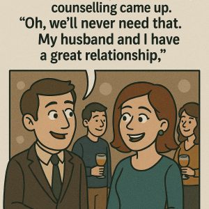 A husband and wife were at a party chatting with some friends when the subject of marriage counseling came up. “Oh, we’ll never need that. My husband…