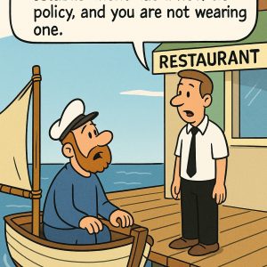 A sailor brings his boat up to a restaurant dock to eat lunch. The dock hand says, “I’m sorry, sir, but I can’t let you dine here…
