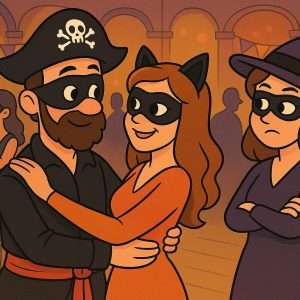 A couple was invited to a swanky masked Halloween Party. She got a terrible headache and told her husband to go to the party alone. He, being…