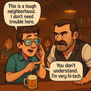 A guy walks into a bar and sits down. He starts dialing numbers… Like a telephone… On his hand and talking into his hand. The bartender walks…