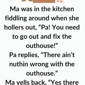 Ma was in the kitchen fiddling around when she hollers out, “Pa! You need to go out and fix the outhouse!” Pa replies, “There ain’t nuthin wrong…