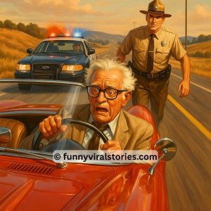 An elderly gentleman had just picked up his shiny new Corvette convertible. Feeling like a teenager again, he decided to test what the car could do. As…