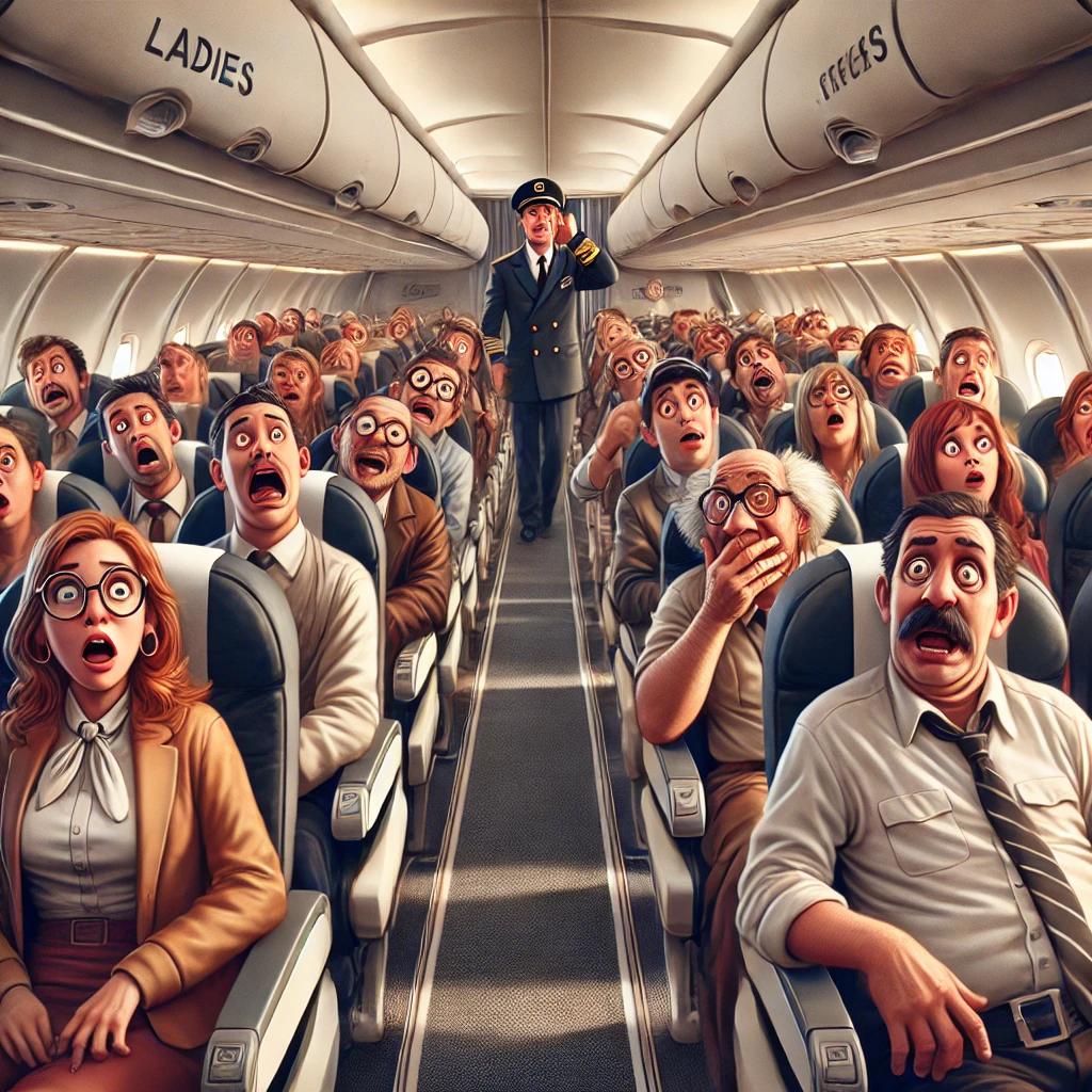 A young passenger turns to the man in the next seat and remarks, “If we lose one more engine, we’ll be up here all day.”