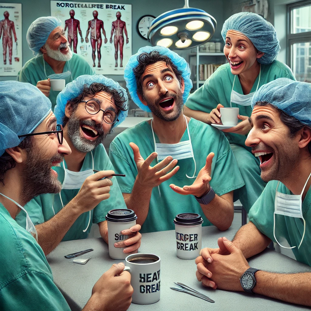 Five surgeons were taking a coffee break and discussing their work