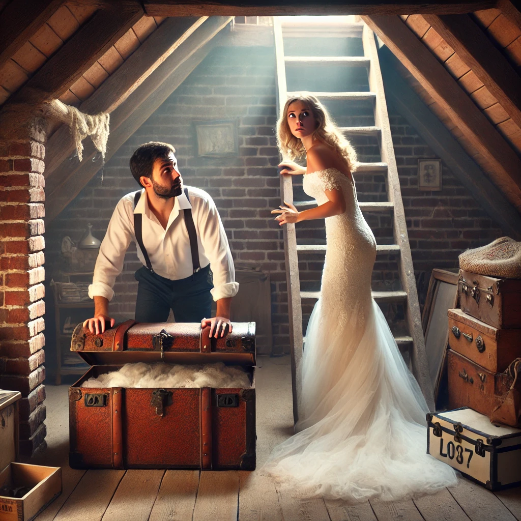 One day, a recently married man goes to the attic of his new home to put a few things in storage.