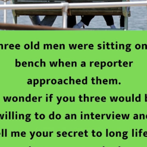 Three old men were sitting on a bench when a reporter approached them. “I wonder if you three would be willing to do an interview and tell…