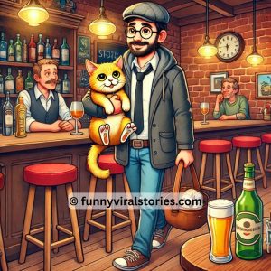 A guy walks into a bar with his cat