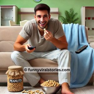 One evening, a man was relaxing at home, watching TV and snacking on peanuts. He had a habit of tossing them in the air and catching them…