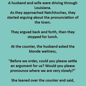 As they approached Natchitoches, they started arguing about the pronunciation of the town. They argued back and forth, then they stopped for lunch. At the counter, the…