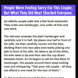 People Were Feeling Sorry For This Couple, But What They Did Next Shocked Everyone. An elderly couple walks into a fast-food restaurant. They order one hamburger, one…