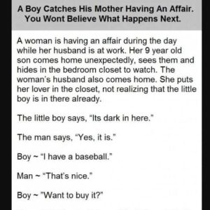 A Boy Catches His Mother Having An Affair. You won’t Believe What Happens Next. A woman is having an affair during the day while her husband is…