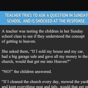 TEACHER TRIES TO ASK A QUESTION IN SUNDAY SCHOOL. AND IS SHOCKED AT THE RESPONSE. A teacher was testing the children in her Sunday school class to…