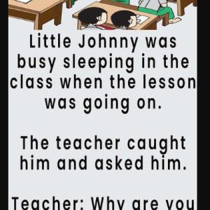 Little Johnny was busy sleeping in the class when the lesson was going on. The teacher caught him and asked him. Teacher: Why are you sleeping while…