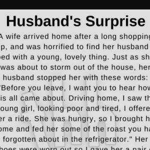Husband’s Surprise A wife arrived home after a long shopping trip, and was horrified to find her husband in bed with a young, lovely thing. Just as…
