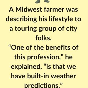 A Midwest farmer was describing his lifestyle to a touring group of city folks. “One of the benefits of this profession,” he explained, “is that we have…