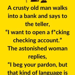 A crusty old man walks into a bank and says to the teller, “I want to open a f*cking checking account.” The astonished woman replies, “I beg…