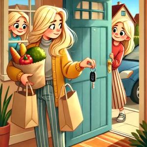 There were three blondes living together. Blonde #1 was coming back from grocery shopping, and she dropped her keys. She walked down the stairs to get them,…
