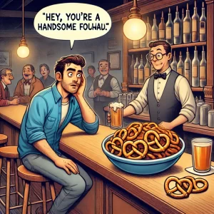 A guy walks into a bar and grabs a stool. Before he can order a drink, the bowl of pretzels on the bar in front of him…