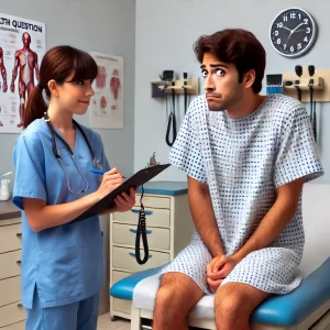 A man goes to a doctor for his yearly routine physical. The nurse starts with the basic health questions. “How much do you weigh?” she asks. “Oh,…