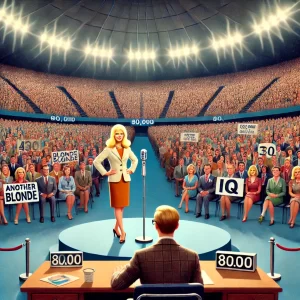 A blonde pays $1,000,000 to use a stadium to prove blondes are smart. She fills the stadium with 80,000 other blondes and calls one up to prove,…
