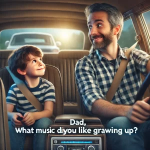 A young boy is listening to the radio in the car with his father. “Dad, what music did you like growing up?” “I was a huge fan…