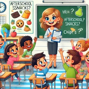A teacher asks her class their favorite afterschool snacks