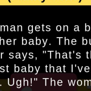 Rude Bus Driver, A woman gets on a bus with her baby. The bus driver says, “That’s the ugliest baby that I’ve ever seen. Ugh!” The woman…
