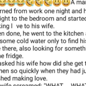A man returned from work one night headed straight to the bedroom and started making love to his wife. When done, he went to the kitchen and…