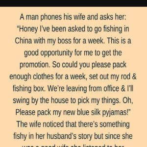 A WIFE WITH 7TH SENSE A man phones his wife and asks her: “Honey I’ve been asked to go fishing in China with my boss for a…