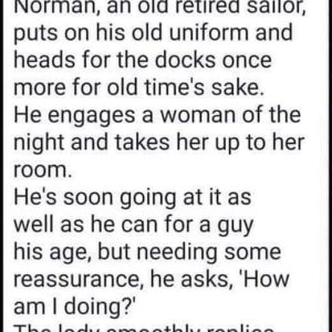Norman, an old retired sailor, puts on his old uniform and heads for the docks once more for old-time’s sake. He engages a woman of the night…