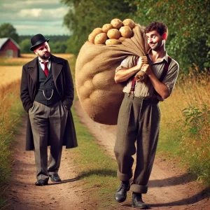 One day there were two men walking down a dirt path. One of them had a big potato sack over his shoulder. The other decided to ask…