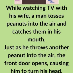 While watching TV with his wife, a man tosses peanuts into the air and catches them in his mouth.Just as he throws another peanut into the air,…