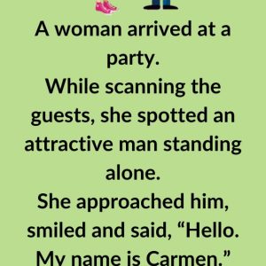 A woman arrived at a party.While scanning the guests, she spotted an attractive man standing alone. She approached him, smiled and said, “Hello.My name is Carmen.” “That’s…