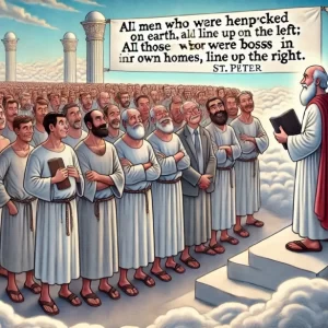 A new group of applicants had just arrived in heaven. St. Peter instructed them, “All men who were henpecked on earth, please line up on the left;…