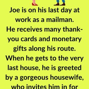 Joe is on his last day at work as a mailman.He receives many thank-you cards and monetary gifts along his route. When he gets to the very…