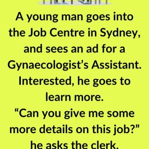 A young man goes into the Job Centre in Sydney, and sees an ad for a Gynaecologist’s Assistant.Interested, he goes to learn more. “Can you give me…